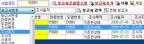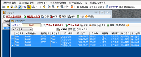 검색기능에 의해서, 사업명, 보고서명 검색가능