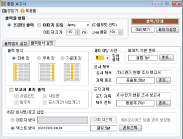 사용자가 직접 다양한 형태의 배관,사진위치 선정을, 출력시 선택 가능함. (기존 에이원프로 혹은 시카스 양식에 맞추어 출력가능)